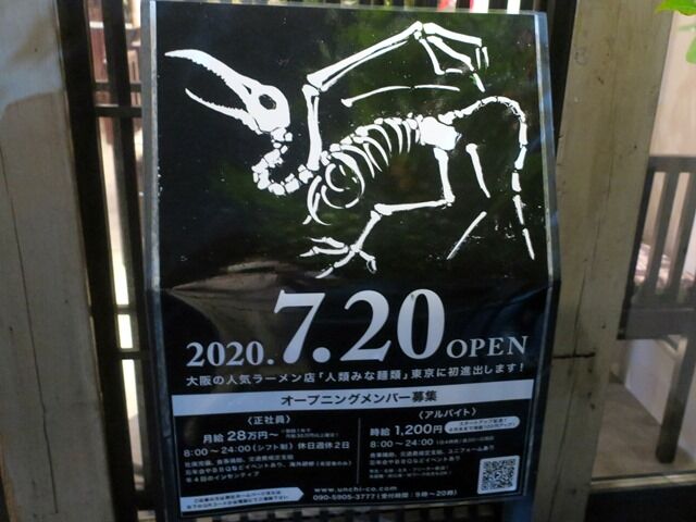 2020年7月20日オープン。大阪のUNCHI株式会社の超有名店が東京進出。オープニングイベントとして、7/20〜7/25、各日100食限定SNSに投稿すると一杯無料。列びが4時間とか5時間半とか知って回避決定。セール終了後に訪店。