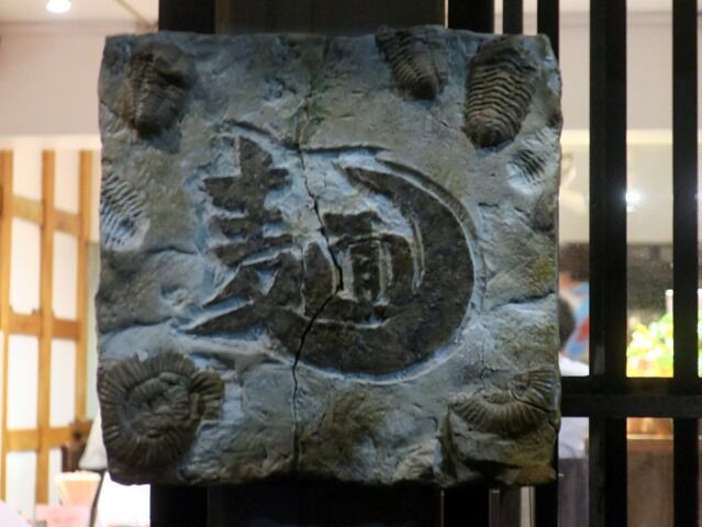 箸は割り箸。卓上調味料は無し。カウンターの上に恐竜の卵!?