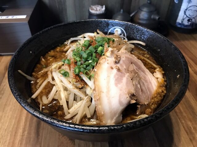 スープは焦がした味噌をタレに使った濃厚な味噌味。辛味は唐辛子の量とありますが、単純な唐辛子の辛味ではない複雑な痺れと辛さがあってとってもスパイシー。日和って大辛にしましたが、なかなかの辛さで発汗出来ます。雑炊用とあるガラムマサラをかけるとカレー風味に味変してこれまたいいですね。すごく美味しい!