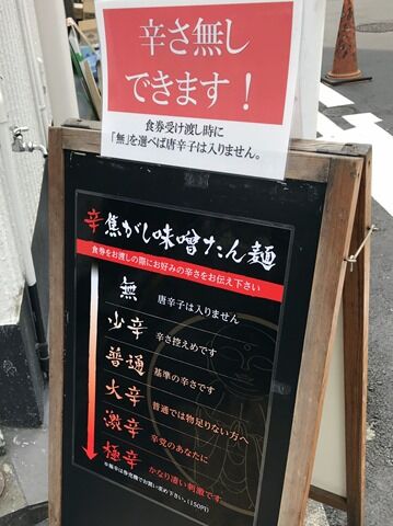 食券を渡すと辛さを聞かれます。辛さは無・少辛・普通・大辛・激辛・極辛(150円)から指定可能。