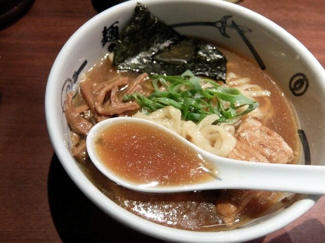 麺屋武蔵は1996年創業で、青葉、くじら軒と並び称されるいわゆる96年組。ジャズが流れる1つずつ異なるランプシェードのシックでモダンな店内に、サンマ節を使ったスープ、こってりは海老香油など、いろいろエポックメイキングなラーメン店として一躍人気店に。