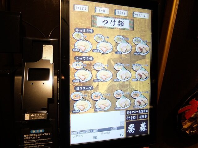 タッチパネルで日本語を選択すると、まず表示されるのがつけ麺のページで、つけ麺推しのメニューレイアウト。