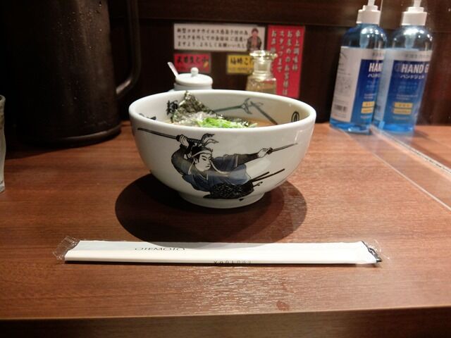 宮本武蔵が描かれたお馴染みの麺鉢丼で着丼。