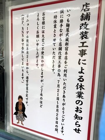 そんな武蔵新宿総本店が、7月20日から老朽化した店舗の改装を理由に休業。