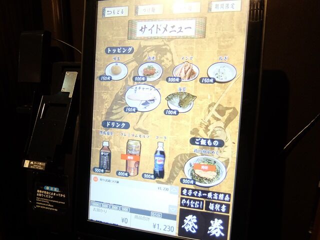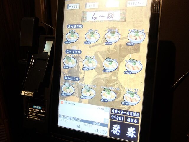 入店するとまずタッチパネル式券売機で食券購入です。