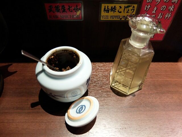 卓上調味料は無しですが、武蔵生七味と柚子酢こしょうは必要なら申告して出してもらう方式。
