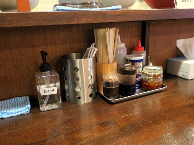 BGMはテレビ放送、日テレザ!世界仰天ニュースなうオンエア。箸は割り箸。卓上調味料はラーメンダレ、GABANブラックペッパー、酢、ラー油、マーラー油。