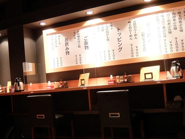 カウンターは席番号C1〜C5ですが、1席間引いて席間を空けて4席で営業、1席毎にアクリル板設置。