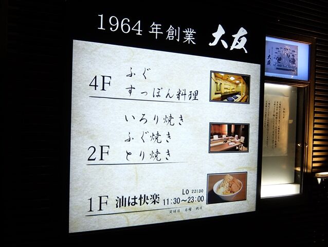 少し詳しく書くと、六本木本店、赤坂に支店のある、昭和39年創業のふぐ料理専門店「ふぐ処 大友」の本店が2018年9月3日当地に移転オープン。