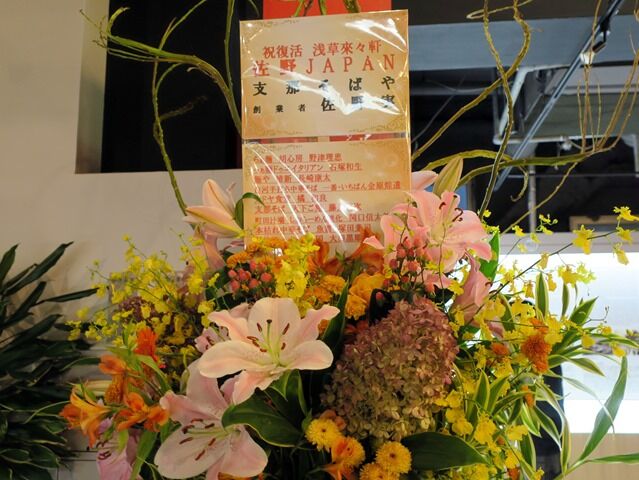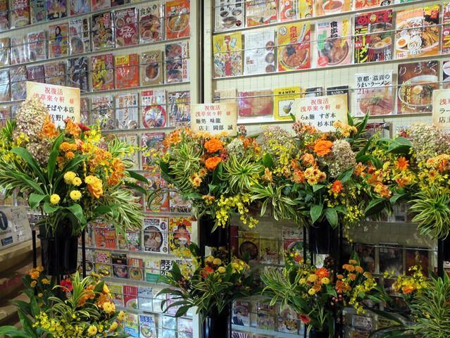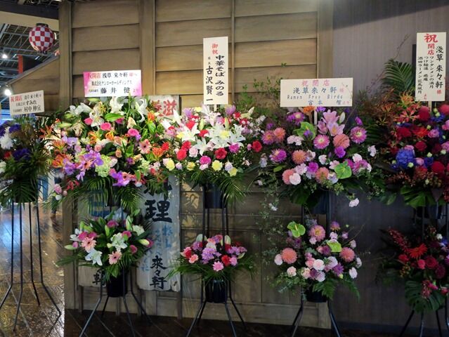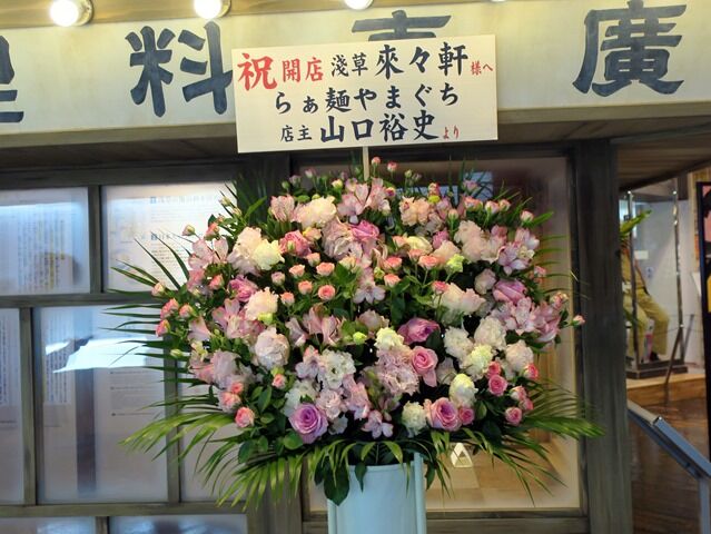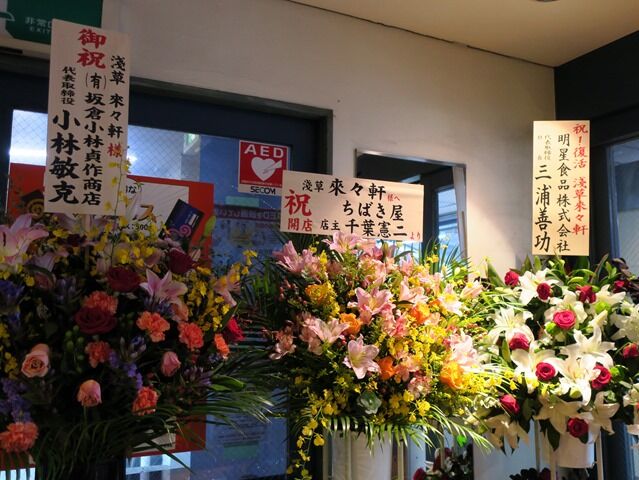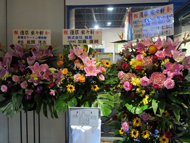 開店祝花は、ちばき屋、明星食品、ラー博館長、蜂屋、ラー博ラーメン店オーナー会、支那そばや、麺処味龍、すぎ本、すみれ、