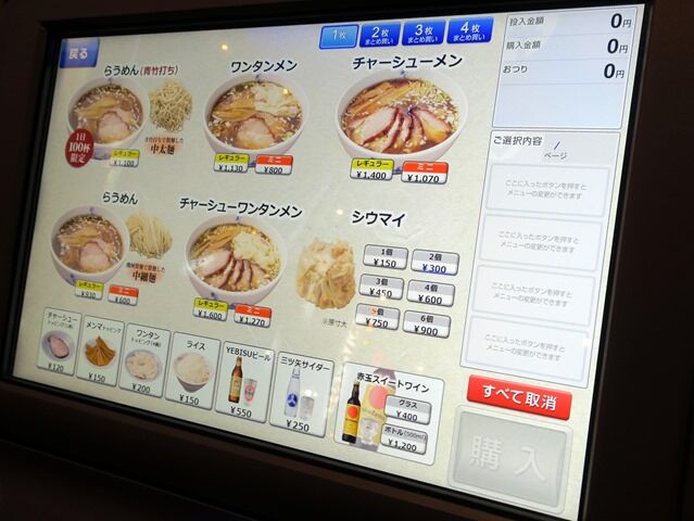 主なメニューは、らうめん(機械打ち麺)930円、らうめん(青竹打ち麺)※1日100食限定1100円、シウマイ(1個)150円、他。