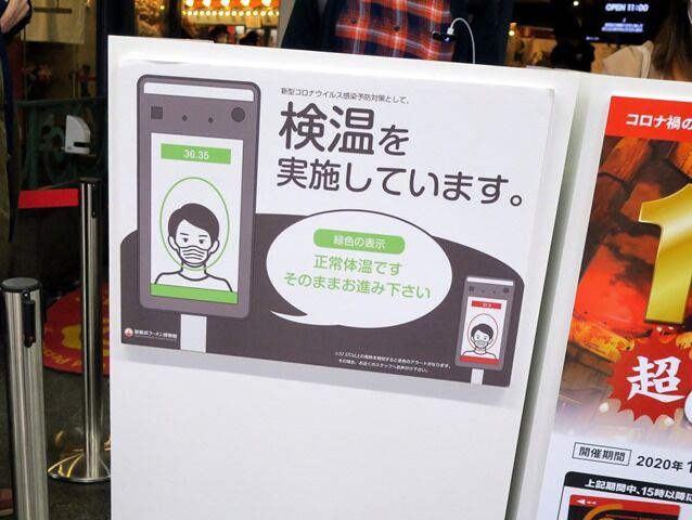入館前に一人ずつ検温するシステム。