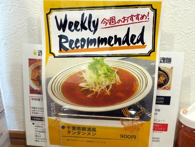 週替り創作麺、訪問時は千葉県勝浦風タンタンメン900円。