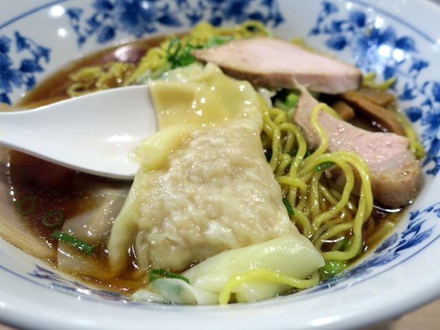 ワンタンは餡がミッシリ。1個でもボリュームたっぷりで食べごたえバッチリ。
