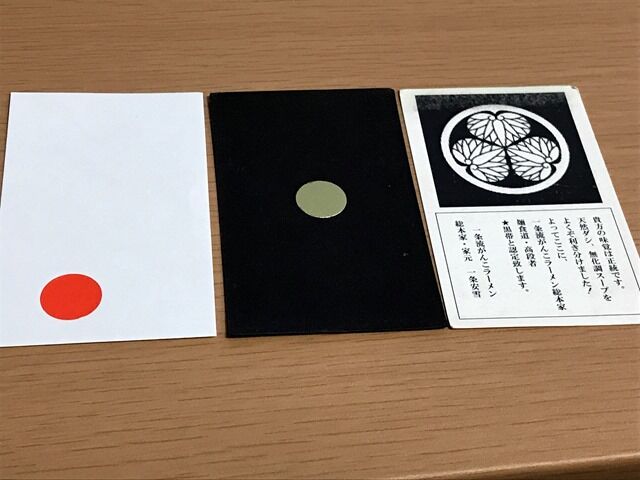 おいしく完食気づけば全汁。飲み干すとメンバーズカードが貰えます。右2枚は以前家元からいただいたもの。左の白が今回分。