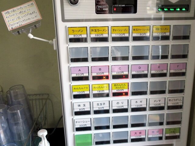 入店するとまず券売機で食券購入です。麺メニューはベースがラーメン800円で、そこにトッピング、特製、大盛りで、バリエーションを構成。