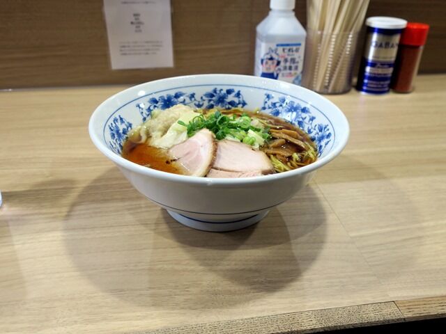 具はバラとモモのチャーシュー2種、メンマ、小口切りねぎ、プレオープンサービスは海老入り肉ワンタンをチョイス。