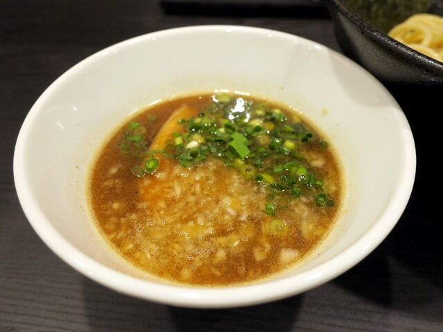 本店ではらぁ麺にしたので今回はつけ麺で。最初につけ汁、ちょっと遅れて麺が着丼。