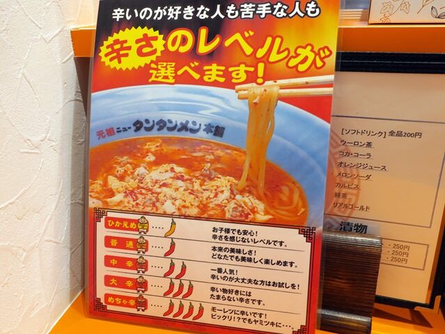 主なメニューは、タンタンメン830円、味噌ラーメン860円、タンメン750円、まぜたん860円、醤油ラーメン650円、他。