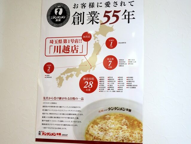 ニュータンタンメン本舗(イソゲン系)は創業55年、埼玉初出店。ニュータンタンメン川口店・蕨店は元々きんけ系で、草加店は以前イソゲン系でしたが、店名をニュータンタンメン本舗草加店→ニュータンタン草加に変更、イソゲン系を離れた模様。