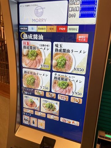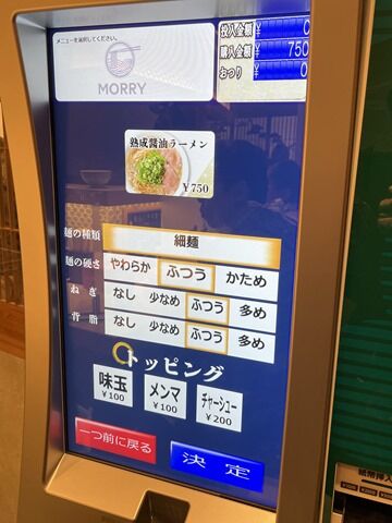 お好み(麺の種類・麺の固さ・ねぎと背脂の量)もすべてタッチパネルで指定する方式。ねぎ多めが出来るのはお得感ありますね。