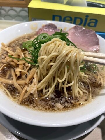 スープはさらさらの清湯醤油味。細かい背脂たっぷり降りかかっていて、ますたに風の京都背脂醤油ラーメンらしいビジュアル。鶏がらベースのスープは良質な背脂ゆえか見た目ほどこってりではなく適度なコクと意外にも後味すっきり。ほどほどのこってり感とギルティさで、実際はすっと入る食べ易いチューニング。幅広い層から指示を受けるだけあってとても美味しい!