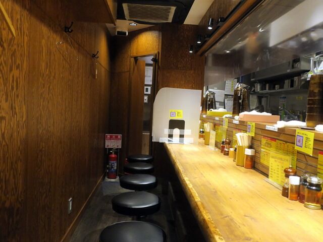 店内は奥に長い真っ直ぐなカウンター12席(10席・間・2席)。19:50頃到着で先客2後客3。厨房にはちょっと強面の店主さんワンオペ体制。