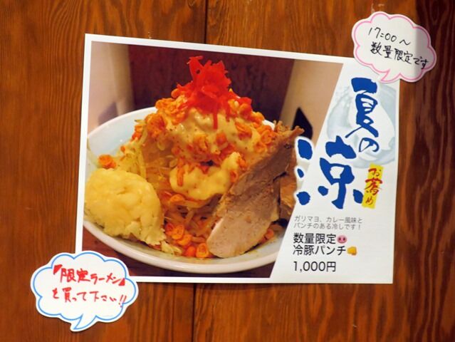 17:00~の夏季数量限定冷豚パンチ1000円は限定麺ボタンで。到着時残念ながら売り切れ、はやっ(T_T)