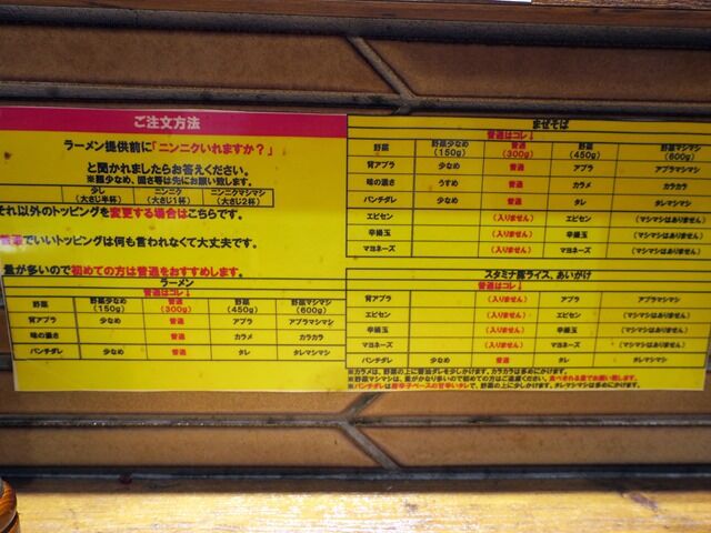 表的に野菜の量で他の無料トッピングの量も決まっちゃうように見えますが、実際は違います。パータン認識苦手だと表がちょっと分かりづらいかな。