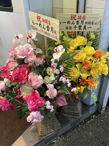 店の場所はJR新橋駅銀座口徒歩約1分。麺屋錦の隣。博多風龍の跡地。 店頭開店祝花は千葉真一さんから。