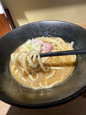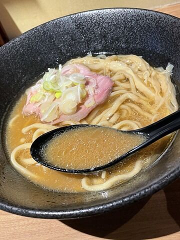 スープはさらりとした豚骨醤油味。鶏油の風味もあって家系風なシフト。タレ濃いめですが出汁が濃厚でしょっぱさは感じません。粘性はありませんが、パワフルで力強いズシリとインパクトのある豚骨スープですごく美味しい!