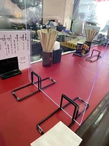 13:20頃到着で先客8後客2。スタッフは店主さんと女性の2名体制。カウンターは1席ごとにアクリル板の仕切り設営。消毒液は店頭入口前に足踏み式のを設置。