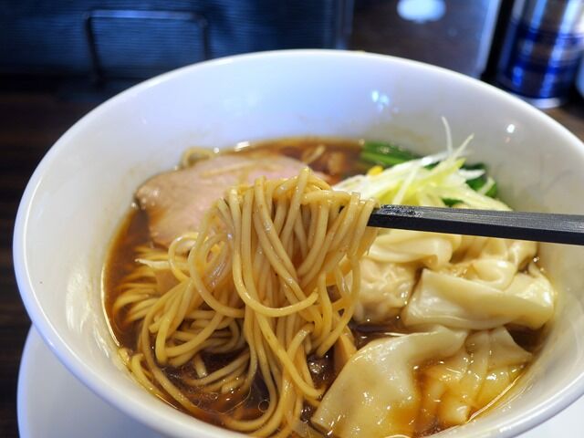 醤油ダレは下総醤油と蔵別の醤油をブレンド、帆立貝柱と干し海老のエキスを加えたもの。スープは大山鶏のガラと丸鶏、モミジ、野菜の鶏スープ、さんま節・宗田がつお・さば節・うるめ鰯・煮干・昆布の魚出汁、アサリ出汁のトリプルスープ。