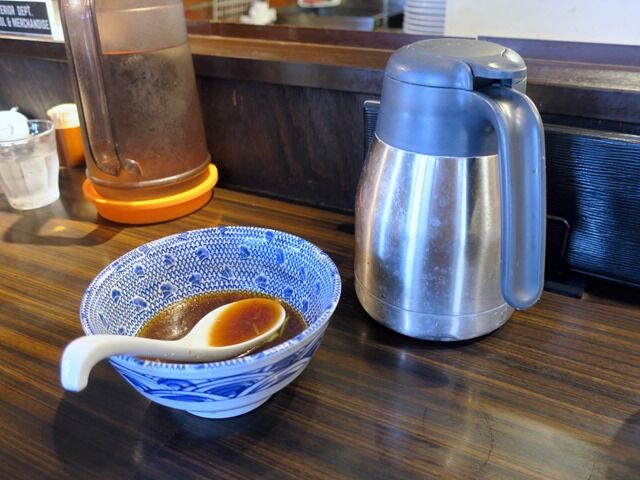 スープ割りはポットからセルフで。時間的にかポットの割りスープがだいぶ冷めていたのが今回唯一惜しい点。