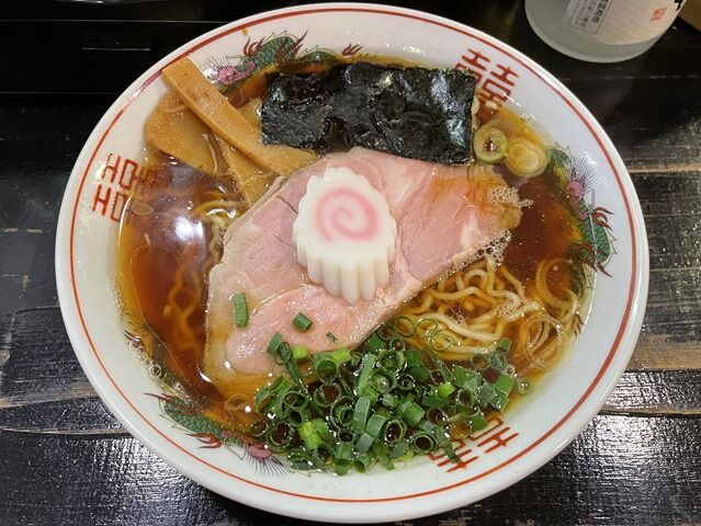 蒼龍と双喜紋があしらわれた昔ながらのラーメン丼で着丼。