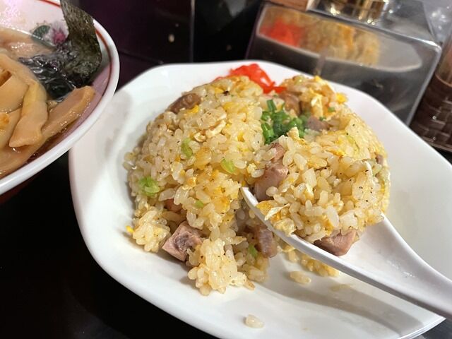 パラッとしっとりが両立したこれぞTHEチャーハンな味。コロチャーシューが文字通りゴロゴロ入ってるのも大盤振る舞いで良心の塊かと。チャヲタも大満足の実に美味しいチャーハンで、これはまた食べたい!