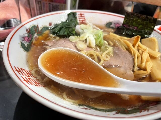 スープはさらさらの清湯醤油味。鶏ガラベースでこれぞ昔ながらの町中華のラーメンと言った味わい。単品でチャーハン頼むと付いてくるスープのそんな味。郷愁を誘う懐かしい古き良きノスタルジックな味ですごく美味しい!