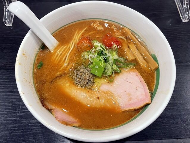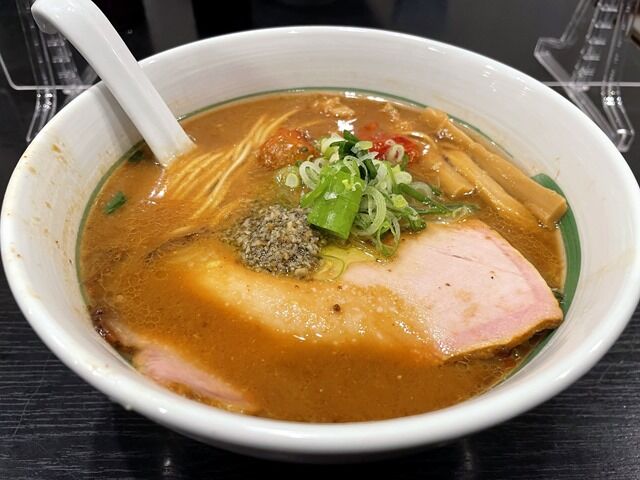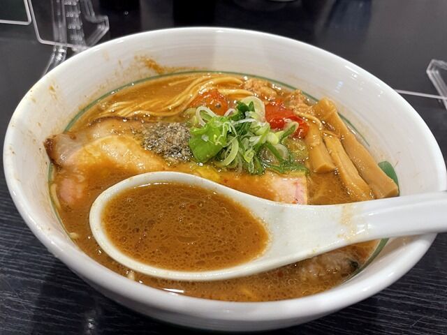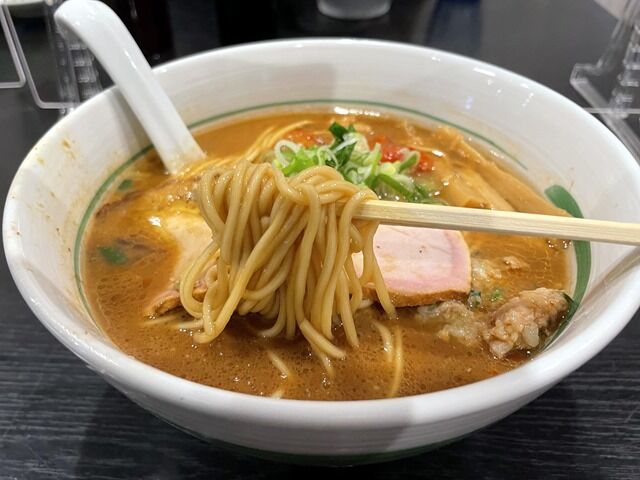 スープはとろんととろみ系の濃厚な味噌味。川の上の先の味噌らーめんをベースにカスタマイズ&ブラッシュアップしたとのこと。仙台味噌風の赤味噌ベースによる力強さと躍動感があります。G麺7流のオリジナリティ溢れる独創的な味噌ラーメンですごく美味しい!
