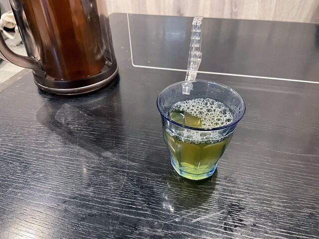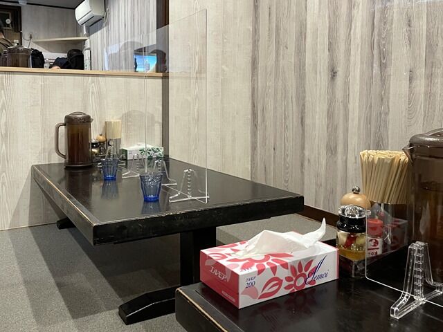 店内は4人卓x2、奥の小上がりに4人卓x3。カウンターはありません。テーブルは対面を仕切る形でアクリル板を設置。試食会ですから地元神奈川民の知り合い多数。ピッチャーの中身は冷たいジャスミン茶。