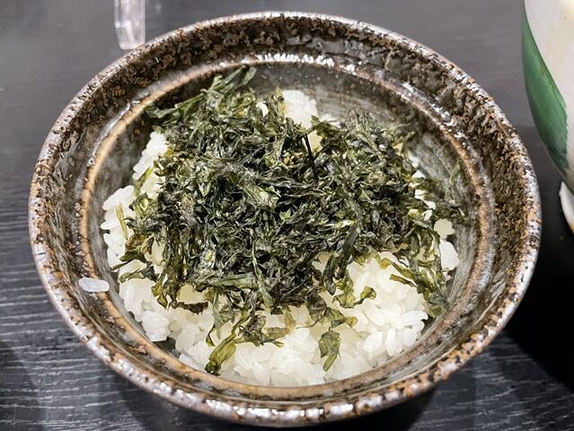 「〆海苔ごっち(海苔丼)」、スープを入れて海苔茶漬けにするやつ(画像のみ)、提供時は蓋付き。
