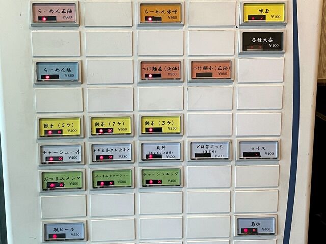 主なメニューは、らーめん正油880円、らーめん味噌950円、らーめん塩880円、つけ麺並正油950円、餃子3個250円、〆海苔ごっち(海苔丼)200円、他。ラーメン 4種類とご飯ものメインの充実したサイドメニューのラインナップ。