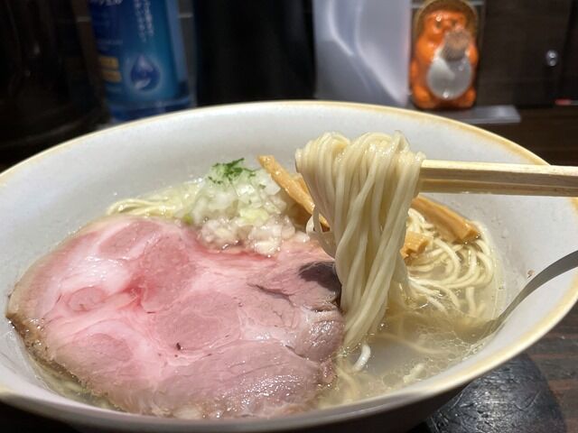 スープはさらさらの清湯塩味。「貝(蛤・浅利・シジミ)たぶん70個分の力」というスープは、あっさりと柔らかくじんわりと旨みが広がる穏やかな味わい。後からじわじわと旨さが浸透してきます。荒れた胃にも優しい癒し系の味ですごく美味しい!