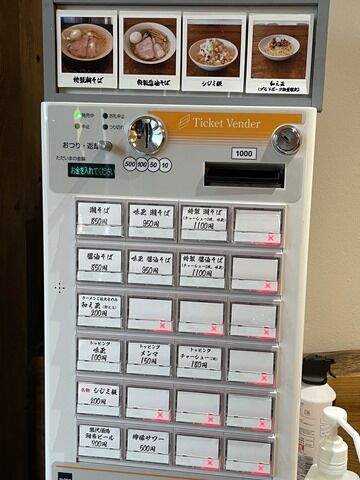 入店するとまず券売機で食券購入です。主なメニューは、潮そば850円、醤油そば850円、和え玉200円、シジミ飯200円、他。