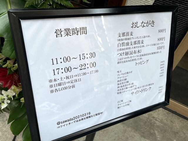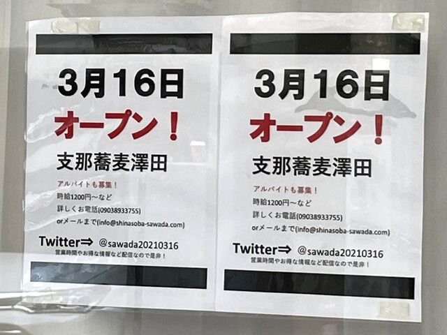 2021年3月16日大安、本日オープンの新店「支那蕎麦 澤田」へ。