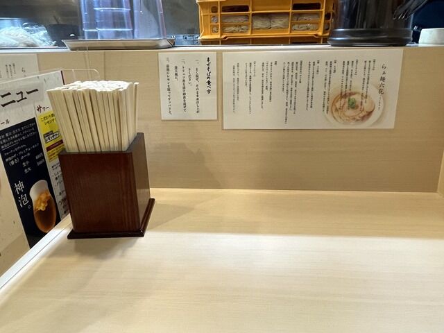 BGMはJ-POP、YOASBIはいつ聴いても良いなぁ♪箸は割り箸。卓上調味料は無し。