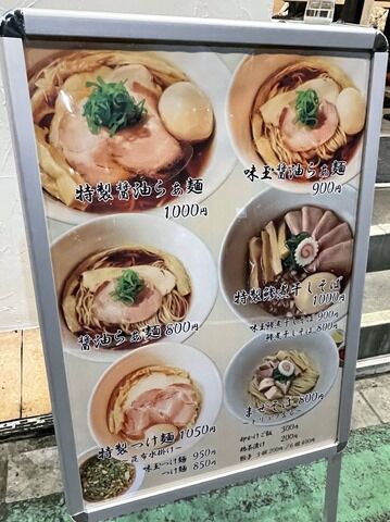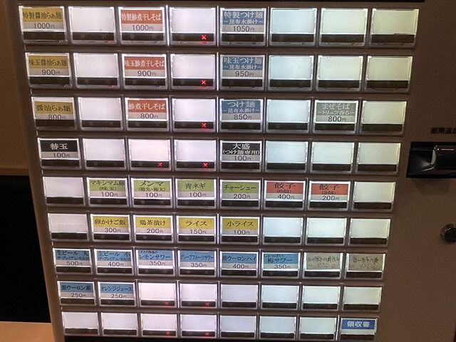 入店するとまず券売機で食券購入です。主なニューは醤油らぁ麺800円、鯵煮干しそば800円、つけ麺~昆布水掛け~850円、まぜそば~トリュフ香る~800円、他。