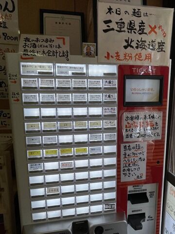 入店するとまず券売機で食券購入です。主なメニューは、頑固おやじ涙の醤油らーめん880円、頑固おやじ涙の塩らーめん880円、小ラーメン(麺100g)700円、他。