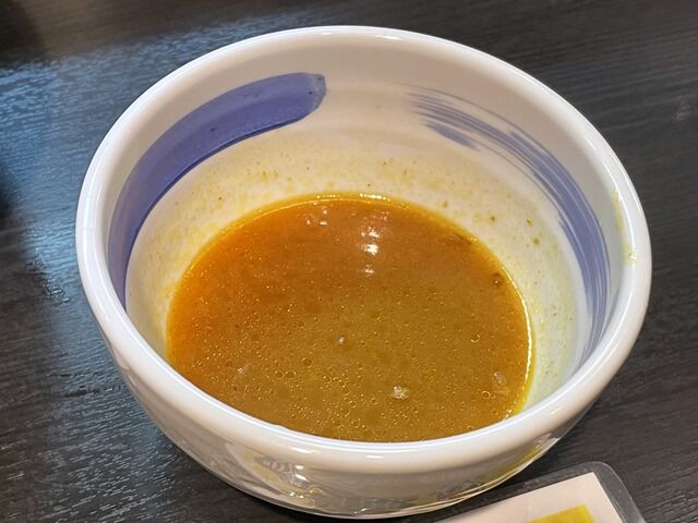 無料で追い出汁(スープ)付き、別椀での提供で好みのタイミングでコールする方式。