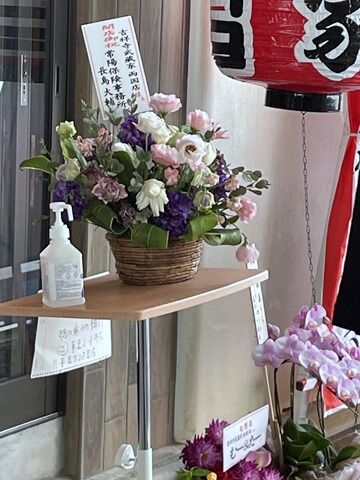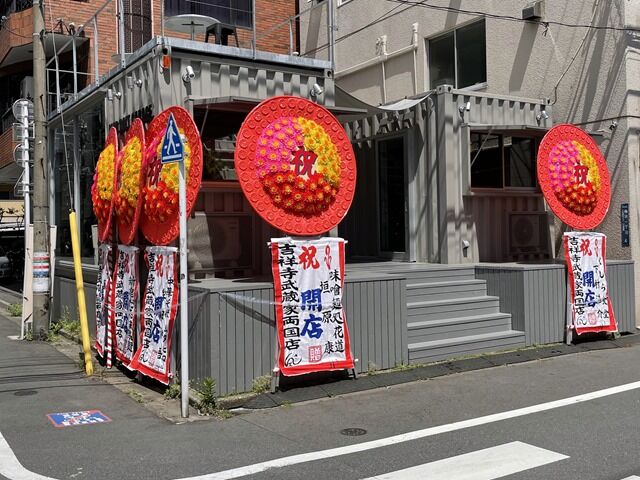 最近のトレンドでしょうか?たた味@小伝馬町でもそうでしたが、パチンコ店かどこかの組の襲名式よろしく、店舗をぐるりと囲む形でおびただしい数の花輪が飾られています。