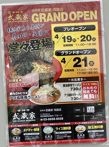 2021年4月24日、両国の新店「吉祥寺武蔵家 両国店」へ。